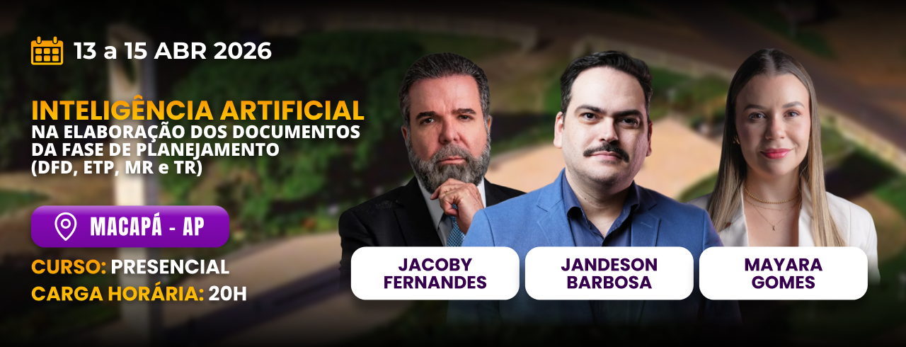 Capacitar os servidores públicos a utilizar a Inteligência Artificial de forma estratégica, segura e juridicamente adequada na elaboração dos documentos da fase de planejamento das contratações públicas, promovendo maior qualidade técnica, coerência lógica, produtividade e segurança jurídica na confecção do DFD, ETP, Mapa de Riscos e Termo de Referência, com redução de falhas recorrentes, mitigação de riscos de questionamentos pelos órgãos de controle e fortalecimento da tomada de decisão administrativa alinhada ao interesse público